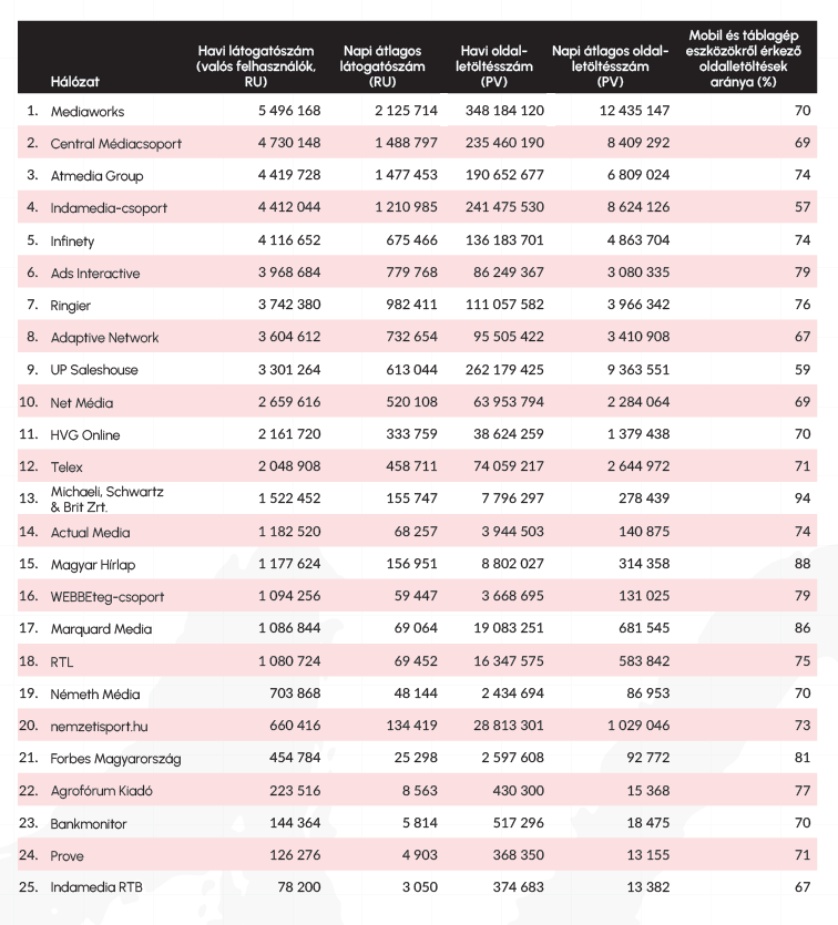 A TOP 25 DIGITÁLIS PORTFÓLIÓ A HAVI LÁTOGATÓSZÁM ALAPJÁN