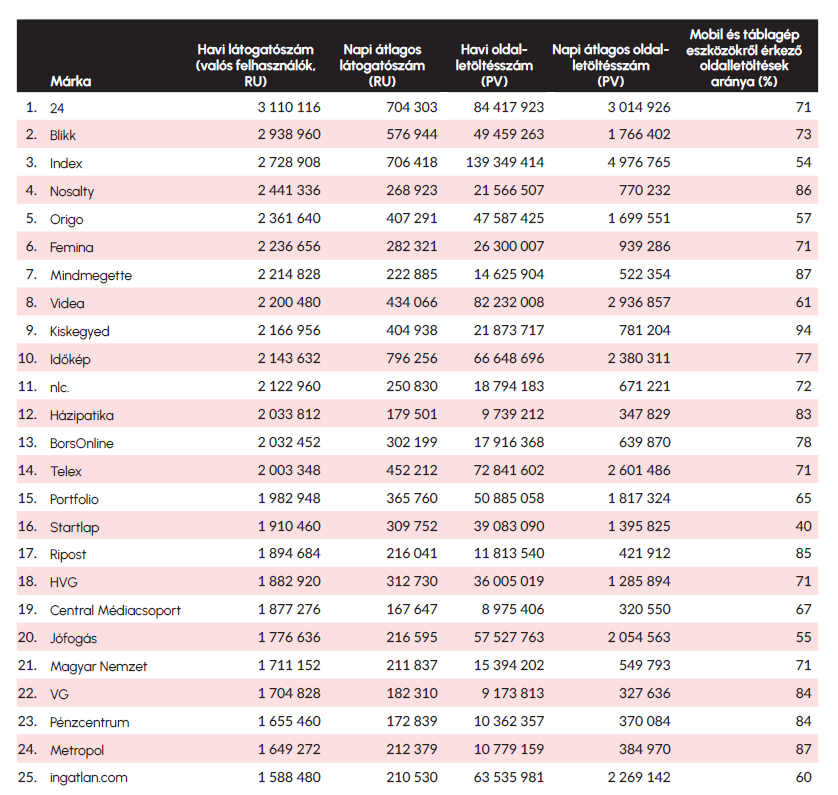 Egy márkának számítanak az azonos vagy gyakorlatilag azonos névvel rendelkező oldalak, applikációk és streamek, így egy-egy brand vizsgálatakor mindezek forgalmát figyelembe vesszük. A márkaalapú megközelítés nem zárja ki a weboldalakra koncentráló elemzést, ám a brandek helyzetéről pontosabb képet ad.