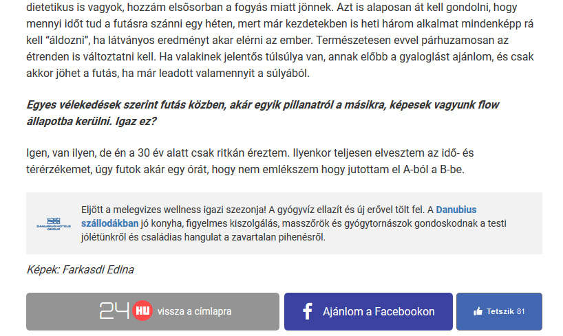 A cikkek alján linket tartalmazó advertoriállal erősítettünk rá az alapüzenetre és a Danubius kapcsolódására. Ezek további előnye, hogy a megvásárolt kampánymegjelenés-időszak lejártával – azaz a displayek lekerülte után – is elérhetőek maradnak, azaz ha valaki ezekre a cikkekre érkezik a későbbiekben (például Google-ből), akkor is találkozik az wellness üzenettel, és át tud menni a Danubius Hotels oldalára.