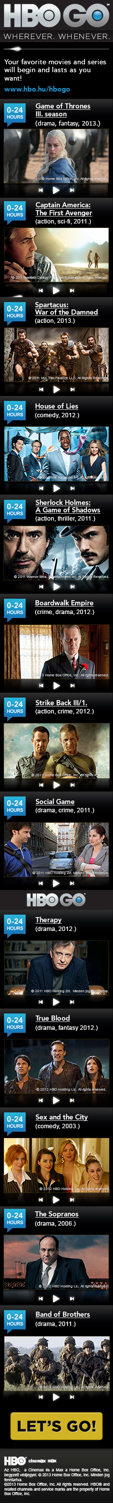 A cél az HBO Go online videótár népszerűsítése, kipróbálók és felhasználók számának növelése.