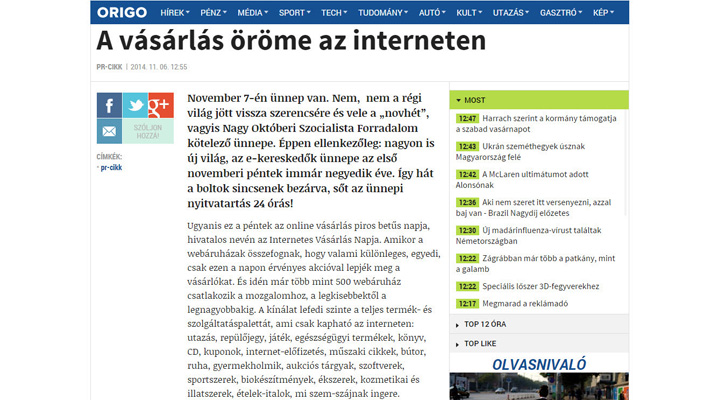 Célunk az volt, hogy létrehozzunk egy mozgalmat, ami népszerűsíti az internetes vásárlást, összefogja a hazai webshopokat, és az egy napig tartó promóciónak köszönhetően fellendíti a forgalmat a karácsony előtti időszakban. További cél volt, hogy az esemény főszponzora, a MasterCard üzenetét is közvetítsük az online fizetés előnyeiről, és felépítsünk egy affinis adatbázist.